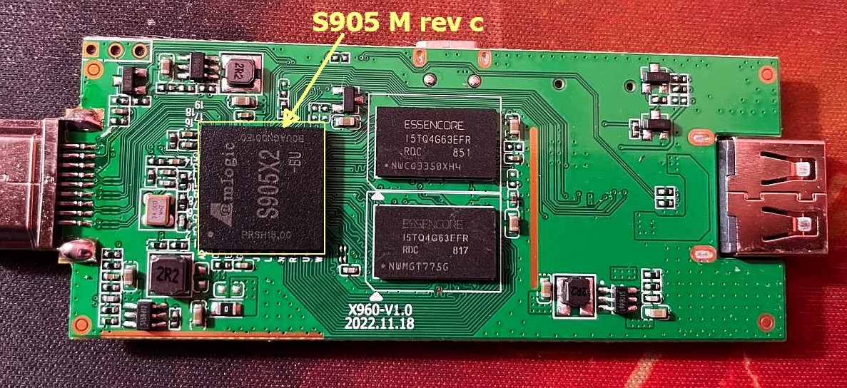 Cita de pitabreadultra en noviembre 27, 2025, 21:07Como restaurar game stick Boyhom 3D GAME LINUX Y6 en una caja azul, y con chip Amlogic S905M o S905H. La placa es verde y tiene una impresión falsa, como S905X2. El chip real es S905H o S905M. El texto en la placa es X960 V1.0 20221118. Esta placa y chip de este gamestick Y6 son muy similares a los gamesticks GD30 (S905M) y M22 (S905M). Vea mis fotos aquí (abajo) y si su placa es diferente, puede publicar su mensaje y foto en la sección "Ayuda general" del foro.