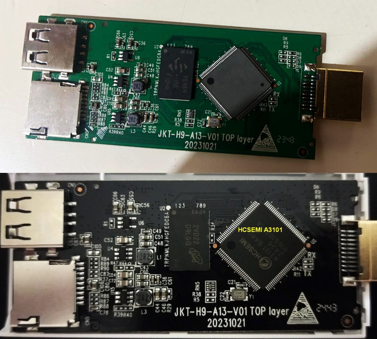 Pandoras Box, JKT H9 A13 V01 TOP layer 20231021 HCSEMI A3101, con placa verde o placa negro, tutorial y fichero para restaurar este Game Stick Lite 4k. Si observa detenidamente el chip principal, es posible que vea la marca "HCSEMI A3101". Normalmente, hay una pirámide blanca en la placa. El reverso puede tener una pirámide blanca. Vea mis fotos aquí (abajo) y si su placa es diferente, puede publicar su mensaje y foto en la sección "Ayuda general" del foro.